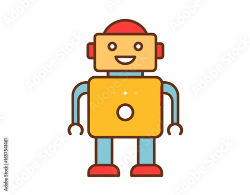 Cute Cartoon Robot with Red Hat and Happy Face.