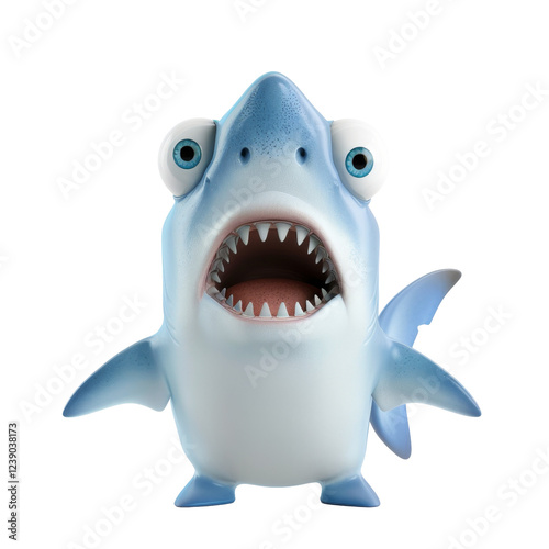Cute cartoon shark with big eyes displaying a playful expression and sharp teeth