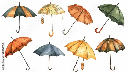 Cute cartoon umbrellas set. White background. Watercolor illustrations set