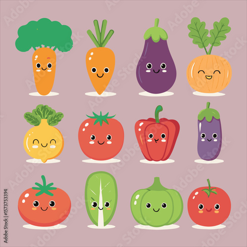 Cute cartoon vegetables happy healthy eating
