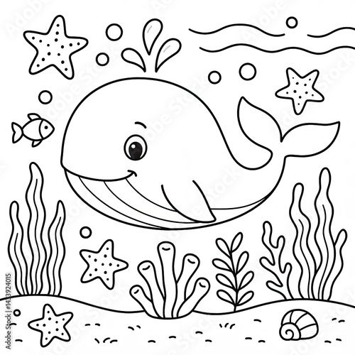 Cute Cartoon Whale Underwater Scene Coloring Page