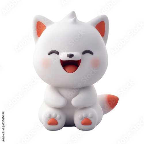 Cute cartoon white fox mascot character. 3d rendering.