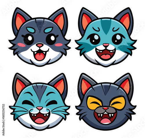 Cute Cat Face Mood Icons – Kawaii Style Expressions Set