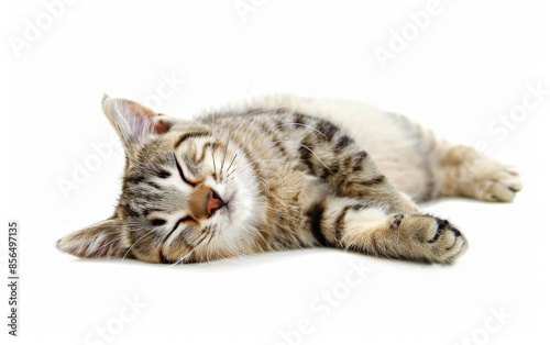 Cute cat lying on the white floor