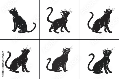 Cute Cat Silhouette Vector Illustration Isolated on White Background