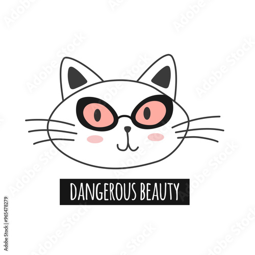 Cute cats in sunglasses with Dangerous beauty words. Characters, stickers, t-shirt designs.