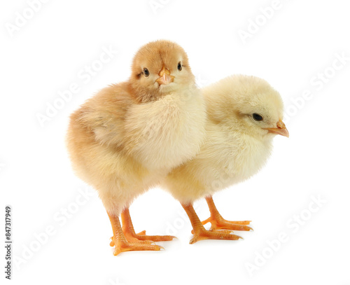 Cute chicks isolated on white. Baby animals