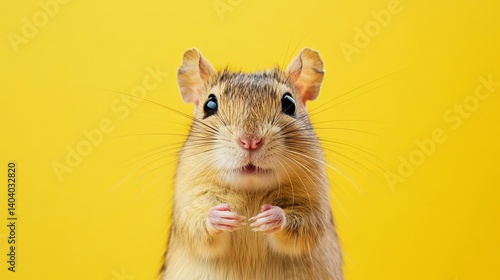 Cute chipmunk portrait on yellow background adorable rodent animal wildlife photography stock image photo