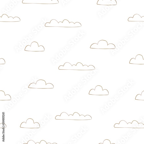Cute Cloud seamless Pattern. Scandinavian Hand Drawn Style. Rainy Day.