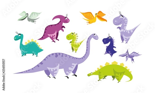 Cute collection of dinosaurs. Cartoon dino. Vector illustration.