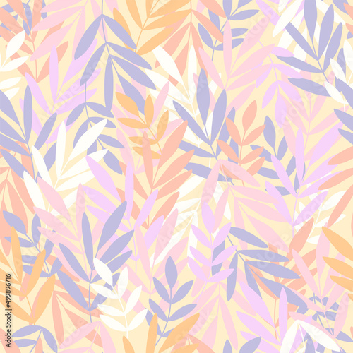Cute colorful seamless pattern with hand drawn leaves and branches. Botanical vector background. Simple trendy floral print for fabric, wallpaper, stationery, wrapping paper