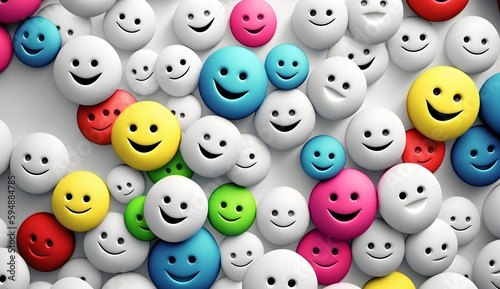 Cute colorful smiley faces pattern white background generative ai