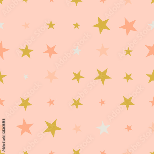 Cute colorful star seamless pattern on white. Funny festive background, wrapping paper. Vector illustration.