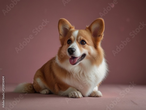 Cute corgi on monotone advertising background. Concept of saint valentine, cute cards, veterinary industry.
