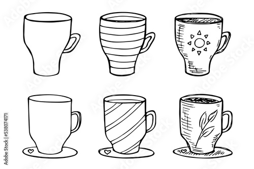 Cute cup of tea and coffee illustration. Simple mug clipart. Cozy home doodle set