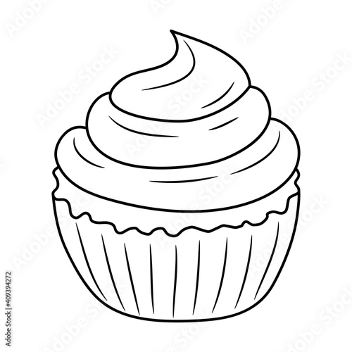 Cute Cupcake, Simple black and white Line art vector illustration