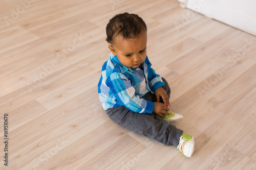 Cute curious baby in the room