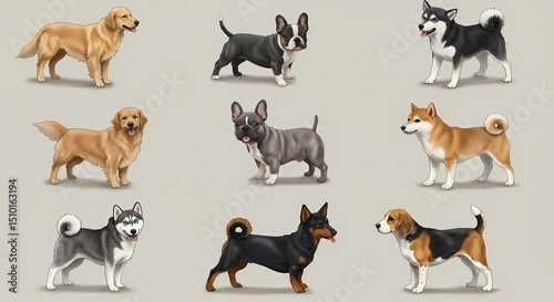 cute dog clip art, featuring a variety of dog breeds