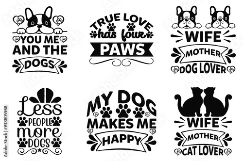 Cute Dog Typography, Labels And Badges Bundle Vector Illustration for Flyer, Magazine, Packaging