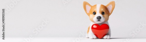 Cute dog with heart for love and friendship concept