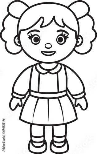 Cute Doll Girl Coloring Page | Printable Line Art for Kids