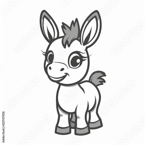 Cute Donkey Vector Logo With Friendly Features, Black and White Design