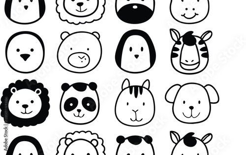 Cute doodle animal face line art. Set with doodle face animals isolated on white background cute nursery collection illustration vector