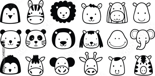 Cute doodle animal face line art. Set with doodle face animals isolated on white background cute nursery collection illustration vector
