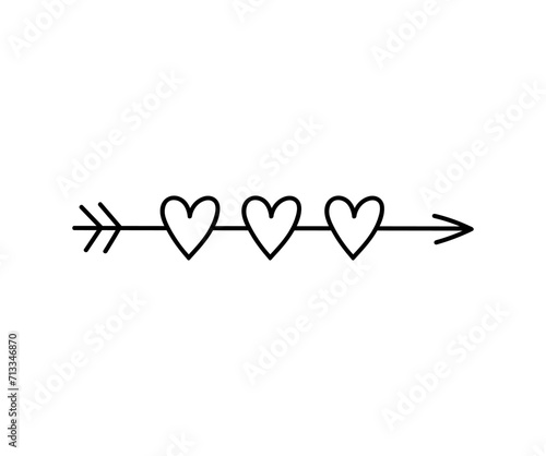 Cute doodle arrow with hearts isolated on white background. Vector hand-drawn illustration. Perfect for Valentines Day designs, cards, invitations, decorations.