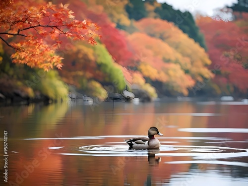 Cute Duck Swimming in a River - Adorable Wildlife, Nature Photography, and Children’s Decor