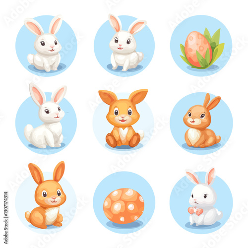 Cute Easter Bunny and Eggs Cartoon Vector Set for Holiday Celebration