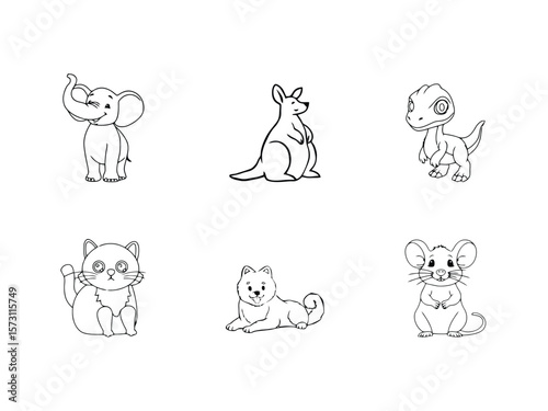 Cute elephant, Kangaroo, Dinosaur, Cat, Dog, Mouse Animal line icons. Pixel perfect. Editable stroke