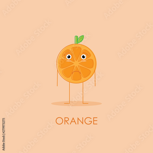 Cute emoji, orange fruit character logo and icon with flat style design vector illustration