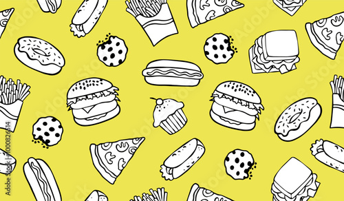 Cute fast food pattern background vector design