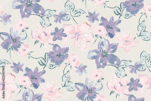 Cute feminine watercolor seamless pattern with wildflowers.hand drawn, not AI