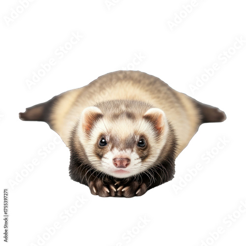 Cute Ferret Lying Down and Looking at Camera, Isolated on Clean transparent background. Transparent PNG Format Isolated Image