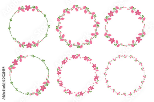 cute flat style minimal pink flower wreath frame collection for valentines day or spring eps10 vectors illustration