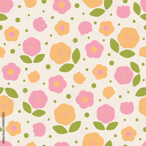Cute floral seamless pattern with flowers and branches. Wildflower vector illustration in spring or summer. Elegant template for fabric, wallpaper, stationery, wrapping, card, and phone cases.