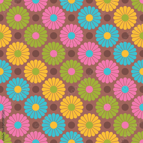 Cute flower power seamless pattern. Decorative retro minimal style floral background.