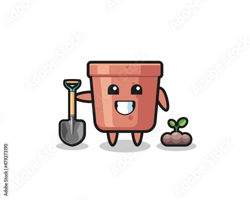 cute flowerpot cartoon is planting a tree seed