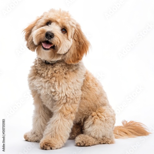 Cute Fluffy Poodle Mix on White Background