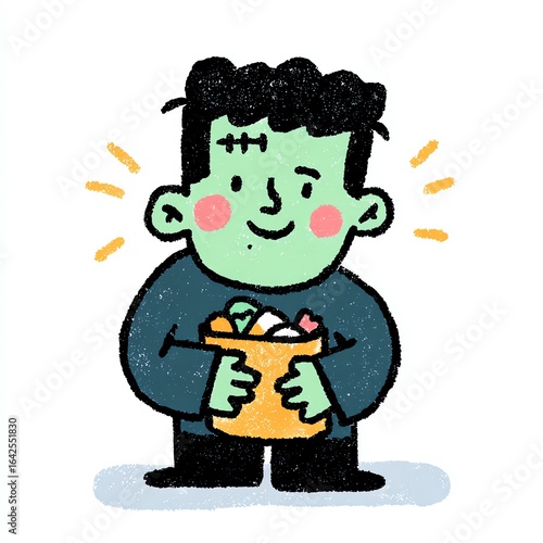 Cute Frankenstein Kid with Candy Bag for Halloween