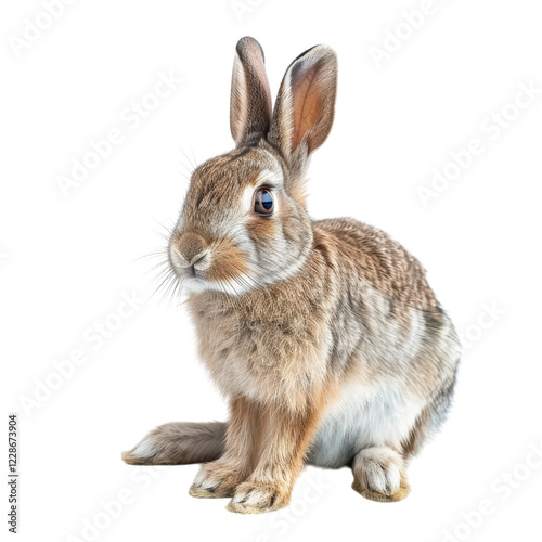 Cute furry rabbit sitting calmly with bright expressive eyes