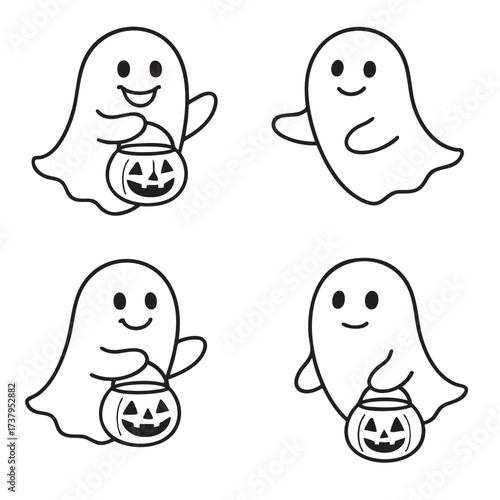 Cute ghost coloring book coloring page with happy ghost holding pumpkin coloring book coloring