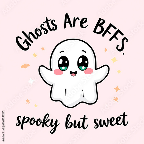 Cute Ghost with Quote “Ghosts Are BFFs – Spooky but Sweet”