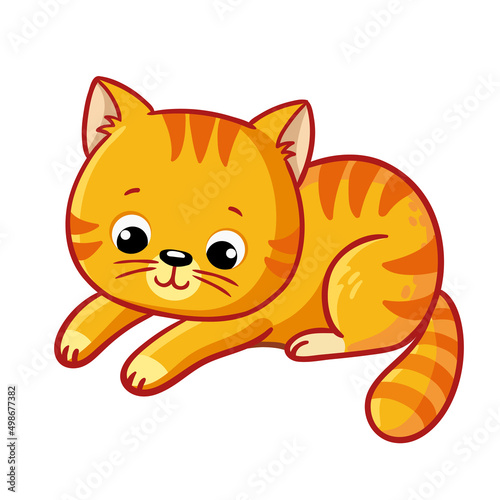 Cute ginger kitten on a white background. Vector illustration with a pet on a white background.