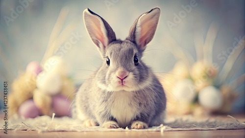 Cute gray and white Easter bunny in a charming vintage photo. Spring's sweetest arrival.