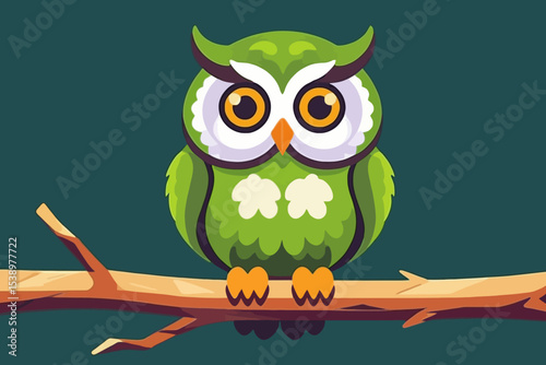 Cute Green Cartoon Owl Illustration-Wise Owl on a Branch-Adorable Owl Vector Art-Perfect for Kids & Nature Lovers-Download Now for Unique Designs