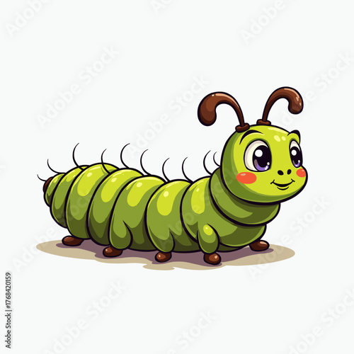 Cute green caterpillar cartoon character with big eyes