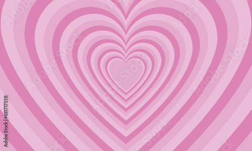 Cute groovy heart romantic background. Tunnel of concentric hearts. Vector illustration